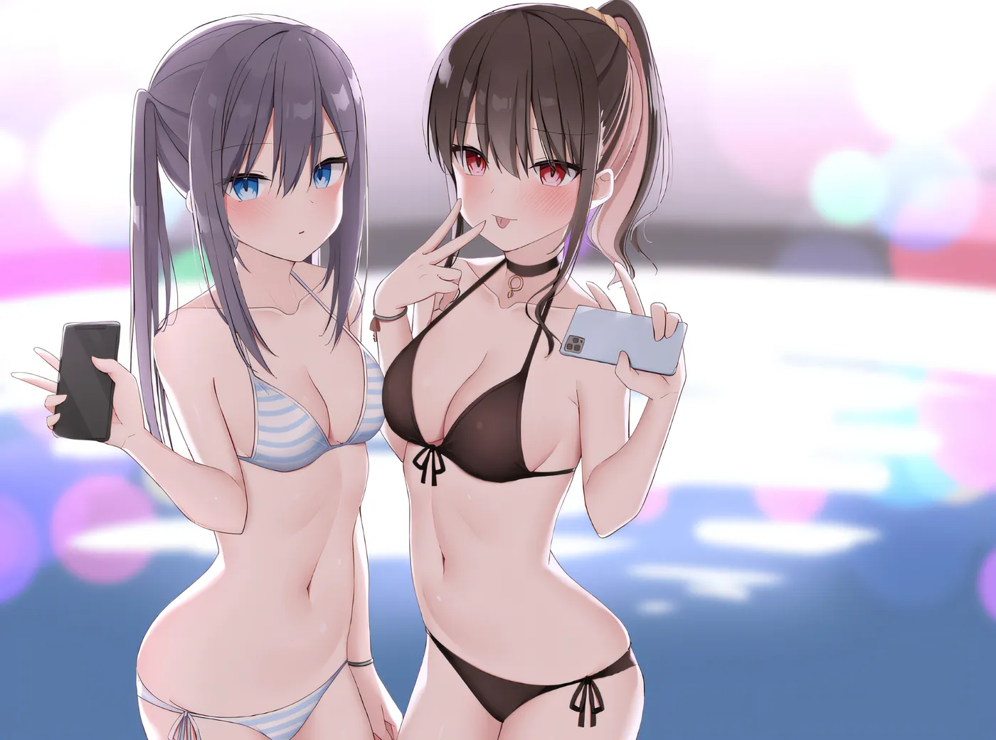 在时尚的夜间泳池与当下的 JK 有纱和留美奈碰面→在爱情酒店尽情享受激情性爱
