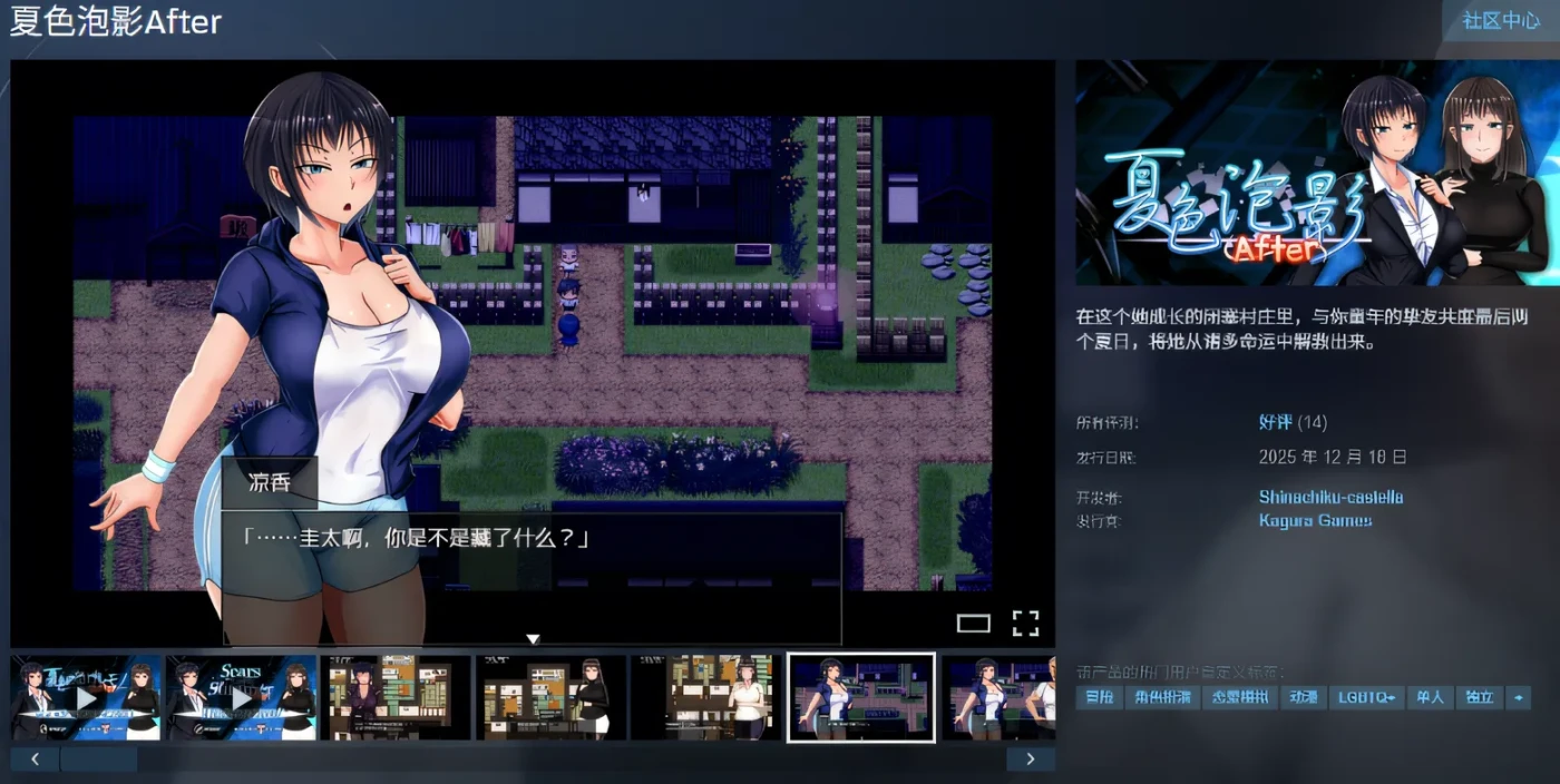 ![]() 游戏介绍Scars of Summer: After在这个她成长的闭塞村庄里,与你童年的挚友共度最后两个夏日,将她从诸多命运中解救出来。 剧情圭太和凉香多年来一直生活在入喜村,是最要好的朋友,每个暑假都会在一起。在续篇中,你可以回到一年前——体验那个改变一切的夏天前,你们最后一段平凡的夏日时光,再次经历那个难忘的夏天。 原作的每条路线都有后续剧情,既填补了夏色泡影中的空白,也展现了之后的故事。此外新增了一些路线——包括一条凉香长大后的路线,以及一条可能并不那么糟糕的路线……幸福结局究竟能否来临呢? 探索一个日本乡村小镇,独自或与凉香一起享受各种活动。通过有趣的小游戏,尝试抓昆虫、劈西瓜、武术、打工,以及收集老式扭蛋机中的所有奖品。 圭太的影响力不大,但他可以在凉香独自一人时给她打电话,聊聊她在做什么,或者去找她当面交谈。如何保持联系,由你决定! 此外,“夏色泡影:After”中新增了一条路线:玩家可以操控咲,探索整个游戏地图,寻找能够帮助她拯救入喜村的特殊人物。 解锁所有路线 只有完成夏色泡影所有路线的后续剧情,才能解锁秘密路线。完成所有路线,体验全新的故事吧! 享受日本乡村生活 完成小游戏和工作可以获得点数,用来从扭蛋机中抽取扭蛋。每拿到一个扭蛋,就可以看到一段咲的过去,集齐所有扭蛋后,就可以操控她来游戏了! 以咲的身份探索世界 操控咲时,入喜村及其他地区的居民会有新的对话和互动方式。探索这些独特互动的所有选项吧! 游戏截图![]() ![]() ![]() 下载链接欢迎光临~ 哎呀,您还不是大会员呢 要给我『3 天空石』才能解锁链接哦 二次元资源尽在AcgFun! |