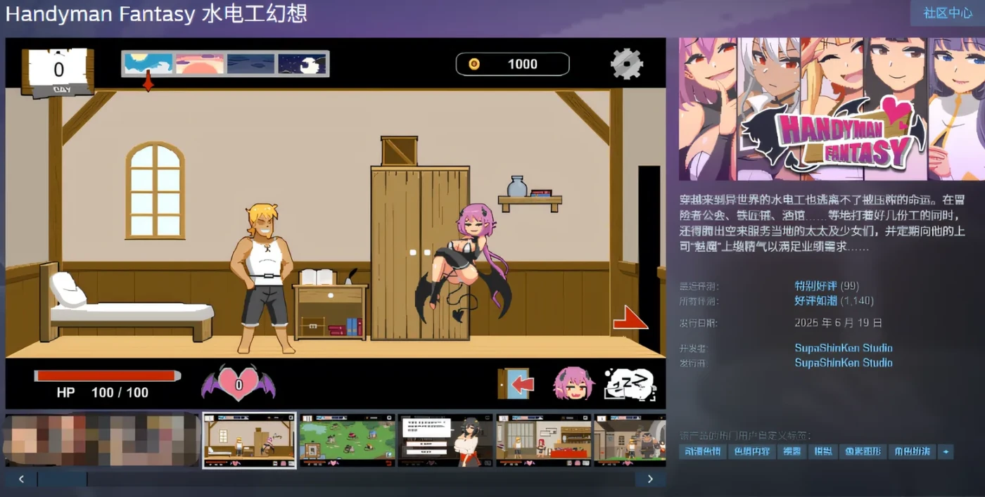 ![]() 游戏介绍穿越来到异世界的水电工也逃离不了被压榨的命运。在冒险者公会、铁匠铺、酒馆……等地打着好几份工的同时,还得腾出空来服务当地的太太及少女们,并定期向他的上司“魅魔”上缴精气以满足业绩需求…… 该游戏包含裸露和色情内容,其中包括: * 半裸和裸体 2D 图像 * 性行为的动画(像素化风格) * 性行为场景(CG 图) * 性暗示的接触 * 酒精 * NTR 自由接案的辣个男人-水电工又来啦!!某天,他跟往常一样接到了委托,出发前往客户家。 就在他修好了马桶,按下冲水测试时,马桶发出了光芒,将他吸了进去。 当再次睁开眼睛时,已身处异世界的村庄内。 “终于来了啊……”一旁的女子迎面走来,并对他说:“传说中的工具人……就是你吗?” 主人公在异世界中也必须打着各种零工来维持生计,在铁匠铺帮忙打铁、酒馆中当店小二、教会里帮修女们整理书架……等等。甚至还必须陪伴冒险者外出打怪? 在酒吧帮猫娘打工,同时一边瑟瑟 不会打斗只好帮忙坦怪? 游戏特色: 游戏中与各个女主角都有不同且独立的剧情、工作小游戏(骚扰)、H场景、以及大张CG图。好感度达到一定程度后,还会开启特殊的堕落模式。 角色能力的提升除了可以通过商店、神秘商店购买道具外,还可以定期上缴给魅魔的“淫气”来解锁新功能并获得技能点数! 试着攻略所有角色,并找出回到现实世界的方法?! 商店贩卖各种功能性道具 每个周期都必须上缴“业绩” 更新日志: DLC Vol. 3 [1219] 经过三个月,我们很高兴为您带来免费DLC第三部分! 如果您一直关注这个系列, 您可能还记得这个女孩——她只出现在活动CG中, 但从未真正可玩:臭名昭著的“Nympho”(΄◞ิ౪◟ิ‵) 自从第一款游戏以来,我们收到了无数玩家的请求, 要求最终可以扮演她。 而这一次……她将正式加入游戏! 也就是说,这并不是本次更新中唯一的补充。 伴随她的首次亮相,还有一个全新的区域“荒野”。 随之而来的是,最初的五位女主角都将获得 全新的插画、新的动作、新的事件场景和新的CG! 一旦夜幕降临,您就可以自由选择一位女孩 陪伴您进入荒野区域。 在那之后……嗯,您知道剩下的事情了。 我们希望您能充分享受我们为您准备的所有新内容。 游戏截图![]() ![]() ![]() ![]() ![]() ![]() ![]() 下载链接欢迎光临~ 哎呀,您还不是大会员呢 要给我『3 天空石』才能解锁链接哦 二次元资源尽在AcgFun! |