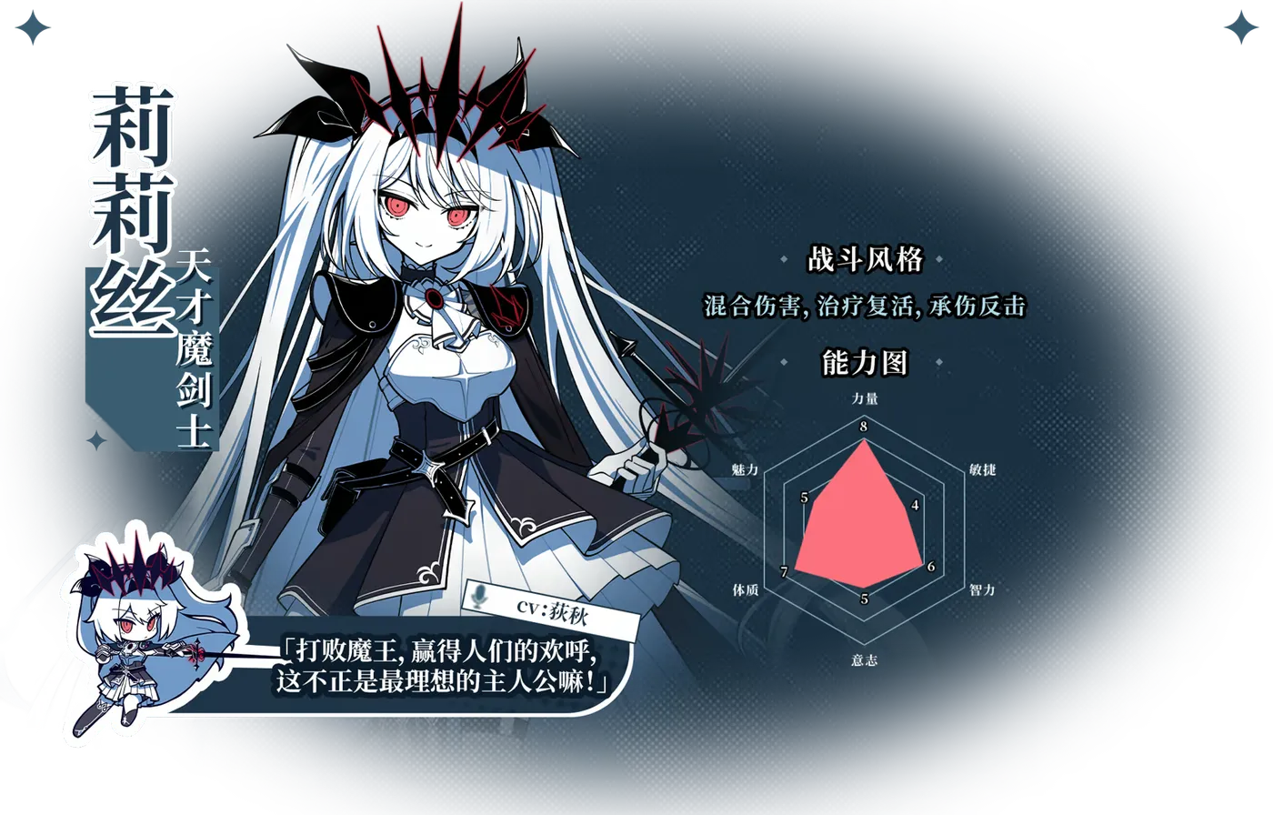![]() 游戏介绍这是你和她未竟的故事,这是属于「你」的旅途……于银葱之森中苏醒的你,开始踏上寻找「逐梦者」秘密的道路。 各大势力的阴谋在水面荡出涟漪,而黑雾则潜藏在更深处暗流涌起。 建立羁绊或播撒仇恨,见证「你们」和「银葱之森」的结局。 公会冒险每一位冒险者都离不开重要的伙伴。 你将成为公会的领导者,和同伴一起规划冒险之旅,在银葱之森写下你们的逐梦篇章。 日程管理冒险者,今天我们要做些什么呢? 是与同伴们一起训练,还是前往深邃的迷宫?亦或是接下黑市商人那不可告人的委托? 决策导向你的每一个选择和决策都可能彻底改变这个世界的走向。 只是,你的能力真的可以支撑你做出这些选择吗? 个性化成长与管理每一位角色都拥有6个维度的数值,以及其独一无二的技能模组及分支。 你可以影响每一位角色的成长路径和装备,最终率领一支极具个人风格的精英冒险者小队。 策略与战斗波灵,哥布林,暗杀藤……银葱之森危险重重, 搭配你的技能与队伍,然后率领他们与数十种不同的敌人进行战斗。 银葱之森的神秘美少女,是一位略懂些魔法技艺的剑士,自称要打败魔王赢得众人的欢呼——不过目前的当务之急是抢购打折面包。 「我叫莉莉丝,一名魔剑士——在商业之里,像你这样的好人可不多了。」 虽然她嘴上说着「好巧」,但似乎已经在这座广袤的森林中等待你许久了——不过这么说好像又有些自恋——也许真的只是「好巧」吧。 在吹灭15岁生日蜡烛之前,卡莲无疑是这世界上最幸福的女孩——一对疼爱她的父母,城堡里的巨大卧室和爱戴着她的王国子民。 直到那天,她许下了一个离开城堡的愿望,跟随着一只蝴蝶走进了森林。再次回来时,她的王国已被一团团黑雾包围,变为人间炼狱——来不及痛哭流涕,一切就已被一场大火焚烧殆尽。 从那之后,卡莲的笑容便消失了,取而代之的是一把锋利的镰刀和一颗复仇的心。 「自求多福吧,我不会再救你一次了。」 卡莲转身便没入了黑暗——为了找到那天消失烈焰中的神秘人影,她不得不扼杀自己的情感。 每天24h工作制,睁眼就是「坚持魔王所领导的新时代魔王军,推进魔物现代化」的例行会议,还要定期对魔王军破坏行动进行等级评定。弗子一度厌倦了自己的生活。 她放弃了作为魔王的职责,本以为可以就此过上无忧无虑的流浪生活,但接任者拉哈蓓的黑暗统治让她对自己的决定陷入了深深的自责。 为了弥补自己的错误,为了阻止这场旷日持久的战争,她作为前魔王,必须要讨伐魔王。 「原来如此,积跬步,至千里……勇者,你已经考虑如此细致了。」 弗子自然找到了自己的勇者,因为她早已看到了这位勇者无数次击败拉哈蓓的未来。 作为从小就在赞叹中长大的「真理之桥」,夏特露的人生无疑是一帆风顺的。过于年轻的才能会受到来自上位者的质疑与嫉妒——那些研究所里的老学究认为夏特露的研究不过是外强中干的空中楼阁。于是无数揶揄与指摘纷至沓来,应付这些社会舆论严重拖累了夏特露的研究进度。 她不想将自己的生命浪费在与平庸之辈的喋喋不休上,于是她抛开一切束缚,主动放弃了第九研究所的工作,她需要大量的时间不停计算与推演,直至「创世大魔法」的完成。 「我突然对你感兴趣了,你就来做我的研究对象吧!」 不过,她似乎又被什么新奇玩意吸引注意了,通往大魔法之路何其漫长。 「打败魔王,成为英雄」是格林自年幼以来的梦想。自8岁的格林第一次在皇城阅兵会上看到萨提尔将军的英勇身姿后,他便暗暗立下了加入银色格里芬的目标。 作为最年轻的格里芬情报对策科探员,格林罗兰成为了备受期待的新星,然而一次任务中的「意外」,却让他身受重伤,再次恢复意识时,他便受到了被军队除名的通知。 没人知道那天究竟发生了什么。格林·罗兰依然如平日般穿梭于市井,今天他有了新的身份、新的目标。 「在下格林,在这片林子里讨生活的猎户。」 从那天起,格林便已决定踏上这条荆棘之路。 这是你和银葱之森的故事银葱之森,这是一处轻语着魔法的世界。生灵在此展现光怪陆离的形态,阴谋在暗影中编织成网,你将身处一段爱恋,一次旅程,一处悬而未决的选择。 当然了,这也是属于「我们」的,独一无二的故事……游戏截图![]() ![]() ![]() 下载链接欢迎光临~ 哎呀,您还不是大会员呢 要给我『3 天空石』才能解锁链接哦 二次元资源尽在AcgFun! |